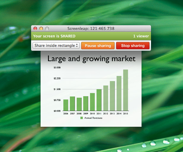 We are excited to announce the general availability of the viewer cam feature for customers using the Screenleap for Mac app. The viewer cam is a small screen that appears below the control panel when a viewer starts viewing your screen.