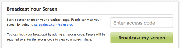 to viewers with an access code that you specify, and broadcast locking allows you to prevent new viewers from joining a screen share that is already in progress.