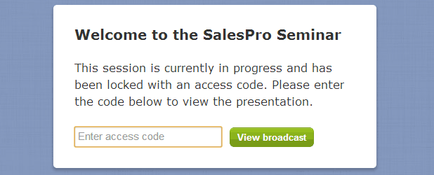 When we launched the broadcast feature a year ago, one of the most requested enhancements was the ability to limit who could access a broadcast. With the latest update, it is now possible to require viewers to enter an access code before being allowed to view a broadcast.